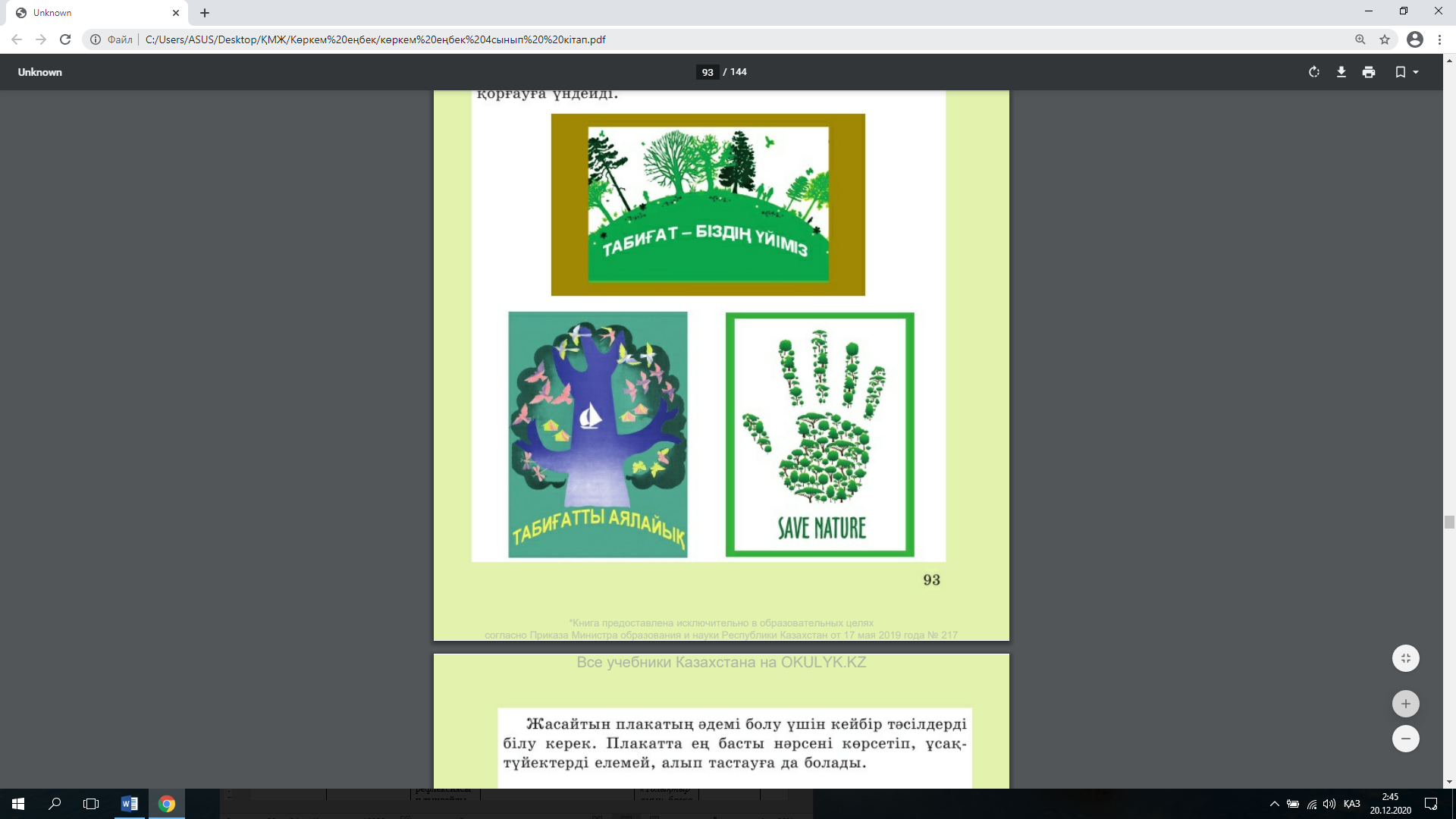 «Қоршаған ортаны қорғау» тақырыбына плакат жасаймыз «».