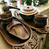 Қазақ халқы киіз үйдің уық, кереге, шаңырағын, ағаш ыдыстарды (тостаған, астау, ожау) жасаған.