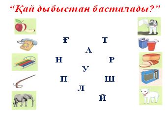 Ц, щ, ч дыбыстарының айтылу артикуляциясымен таныстыру. Басқа дыбыстардың ішінен айыра білуге, сөзге дыбыстық талдау жасауға, сөзді буынға дұрыс бөлуге үйрету. Сурет арқылы заттың атауын білу, ойлау қабілеттерін арттыру. |