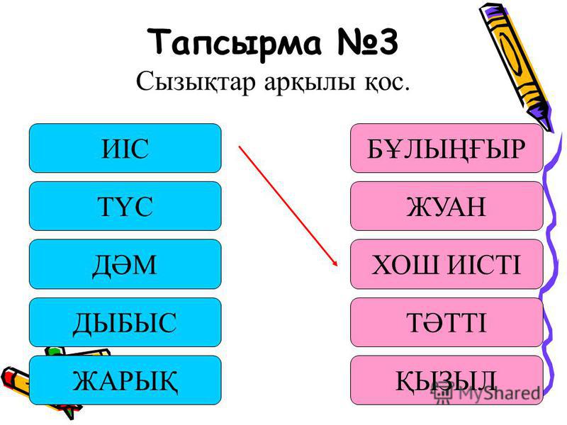 3-тапсырма. Алма сөзін - қызыл, шие сөзін- қара қоңыр, көл-көк, гүл-күлгін, маусым-жасыл, шілде-қызыл-сары, тамыз-сары, қарбыз-жасыл түспен боя.