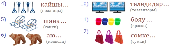 Көп нүктенің орнына тиісті жалғау жалғап жаз. Мысалы, бір зат болғанда қалай атаймыз, 2-3 зат болғанда қалай атаймыз