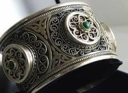 Мысалы; қапсырма (қыз - келіншектер киімінің екі өңірін қаусырып, іліп тұратын ілгек), әшекейлі сырға, білезік, шолпы және т.б. Оларға әр алуан әшекей тастар салынады. |