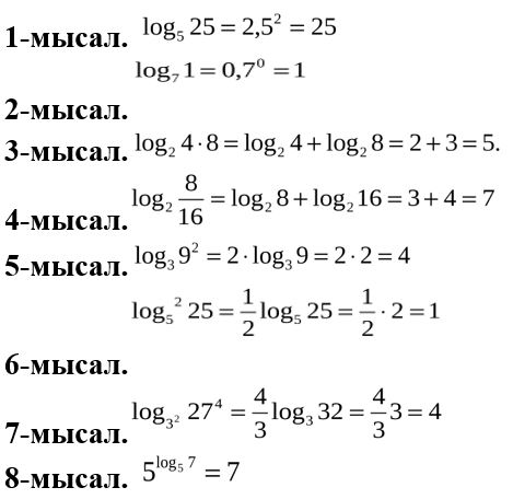 логарифмдік өрнектерді түрлендіруге қосымша формулалар.