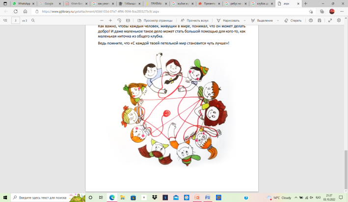 Қатысушылар шеңбер құрып тұрады. Жүргізуші тоқыма жіпті бір саусағына іліп алып,өзі қалаған қатысушыға жылы лебізін білдіріп лақтырады. Жаттығу осылай жалғасады. Соңында «достық торы» пайда болады. Бүгінгі сабақтан жақсы әсер алып,үйге көтеріңкі көңіл-күймен қайтуға тілектеспін.