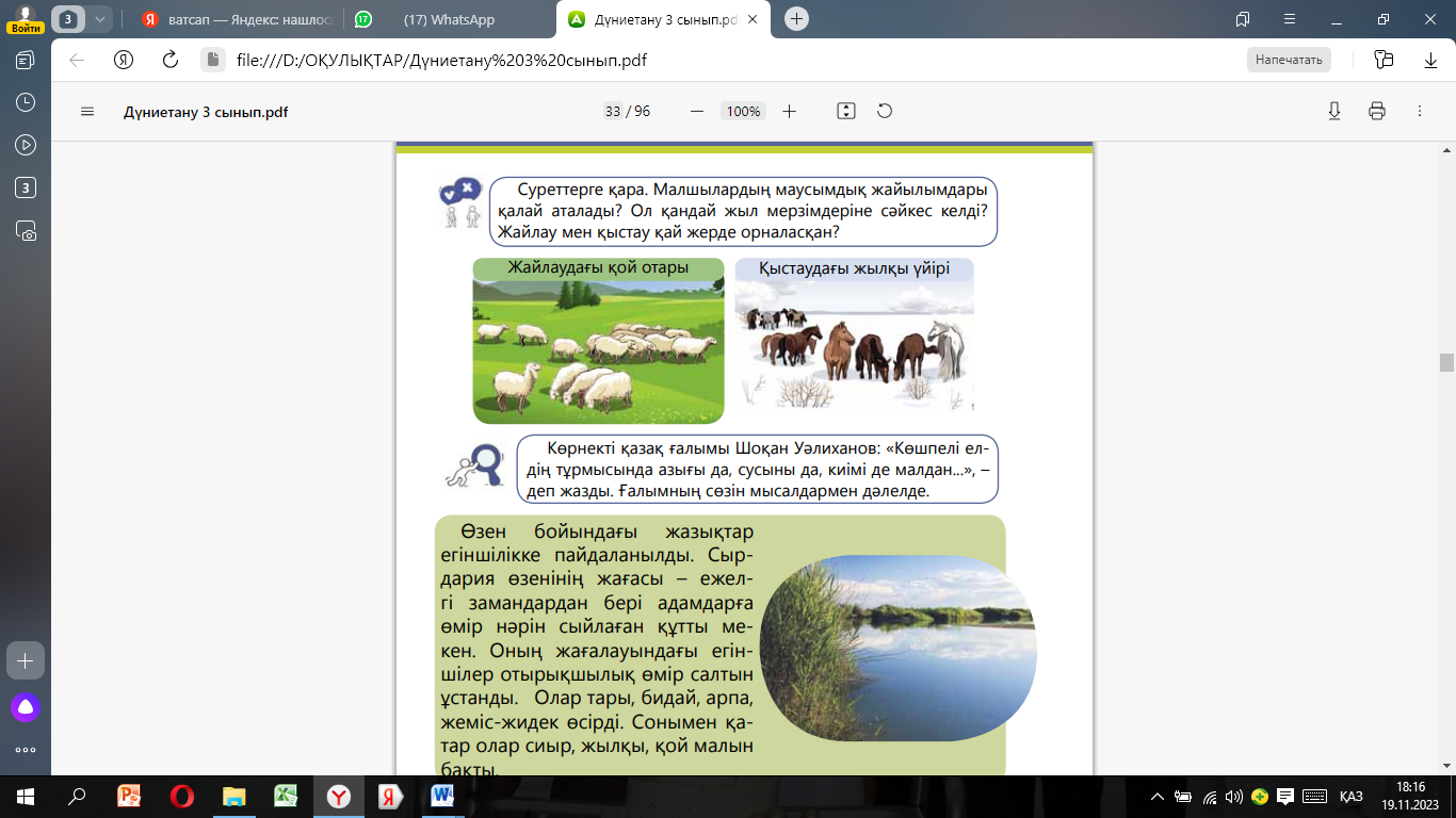 1. маусымдық жайылымдарды атайды 2.жайылымдарды жыл мезгілдеріне сәйкестендіреді