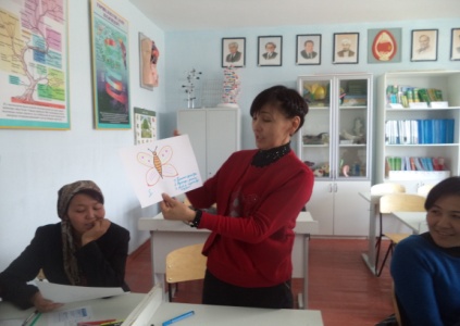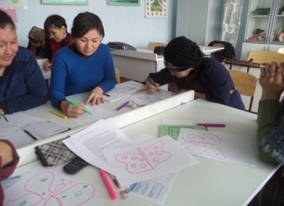 Топтарға құралдар тарату. Әр топ мүшесі қолындағы құралдарды пайдаланып, көбелектің суретін салады. 1-тапсырма: Жұптық жұмыс әр топ мүшесі өз жұбының суретіне баға қояды. 2-тапсырма: Топтық жұмыс. Топ көбелектің суреттеріне бірлесе отырып бағалау критерийлерін жасауды тапсырамын. Суреттерін критерилері бойынша бағалатамын. 3-тапсырма. Мен өзімнің критериімді ұсынамын.