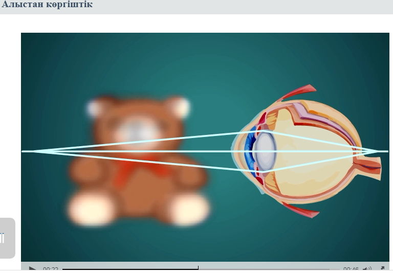 O Көз тым кішкентай O Оптикалық күш тым кіші Алыстан көргіштік O O Көз тым тұңғиық Дескриптор: Білім алушы
