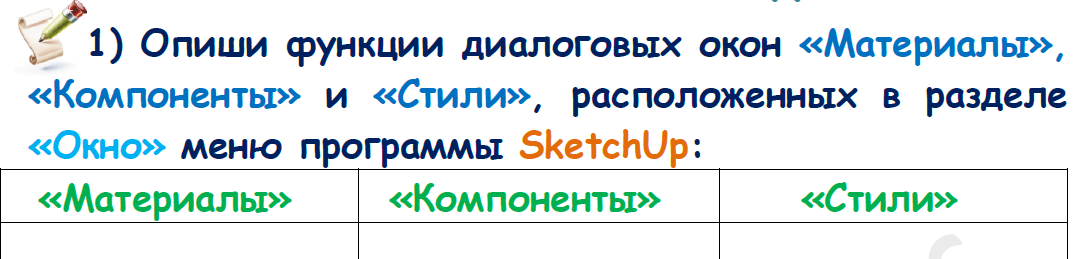 Научить учащихся создавать простые 3D-модели объектов, используя инструменты 3D-редактора для построения формы, изменения размеров, поворота и объединения деталей в программе SketchUp. |