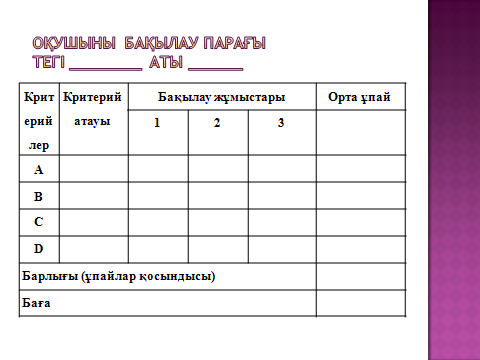 Құрылымдық бағалау мен нақтылы бағалаулар арқылы оқушының еңбегін анықтау;