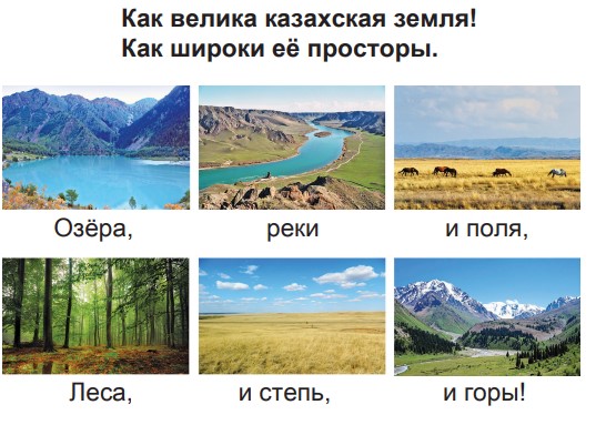Учитель предлагает рассмотреть картинки, рассказать, знают ли они эту местность. Предлагает описать природу. |