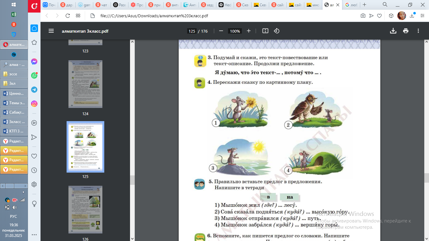 Умеет дополнять предложение-2б Пересказывает сказку используя картинки-2б Рассказывает про Ш.Уалиханова-1б |