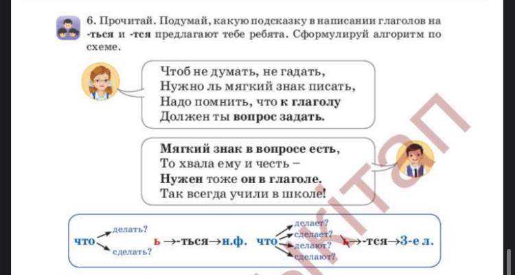 -Мне нужно два ученика, чтобы прочитали правила -ться и -тся -Когда в глаголах пишется -ться? -Когда в глаголах пишется -тся? Вывод: -Правильно ребята, в глаголах неопределенной формы пишется -ться, а в глаголах 3-го лица пишется -ться -Наша тема связано с природой, как думаете как мы можем помочь окружающей среде с другим способом? -Да ребята,правильно. А теперь давайте прочитаем текст связанный с этой темой Выполнение упражнений. -Открывайте пожалуйста стр.76, обратите внимание на упр.5. Что же нам нужно тут сделать? Давайте прочитаем 5. Прочитай заголовок текста, попробуй ответить на вопрос. Прочитай текст. Найди в нём ответ на вопрос заголовка. Что можно сделать из старых игрушек? От старых игрушек можно не избавляться, а придумать для них вторую жизнь. Ты тоже можешь этому научиться. Конечно тебе понадобится помощь родителей. •Из старой машинки у тебя может получится интересная игольница. Такому подарку обрадуется твоя бабушка. Из маленьких игрушек можно сделать отличные настенные часы. А твои гости долго будут удивляться их оригинальности. А обычное зеркало может превратиться в волшебное. И в нем будут отражаться счастливые лица всех членов твоей семьи. Если твоя маленькая машинка сломалась, не стоит огорчаться. Вместе со взрослыми ты сможешь сделать из неё отличный брелок для ключей. Думаю, что тебе в голову придут не менее интересные идеи, и это поможет уменьшить загрязнение планеты. Вопросы: -О чем этот текст? (о том, что можно сделать из старых игрушек) -Что можно сделать из старых игрушек?(игольница из старой машинки, настенные часы, из старых игрушек, брелок для ключей из игрушки, зеркало из маленьких машин) - Какой тип текста?Почему? (описание, рассуждение, повествование) -Подумайте, каким еще старым вещам можно дать «новую жизнь»? (ответы учащихся) Вывод: -Хорошо ребята, значит мы можем подарить новую жизнь старым вещам, и при этом помочь окружающей среде. Работа у доски -Выпишите пожалуйста из текста выделенные глаголы. Мы их запишем в два столбика, в первый столбик глаголы которые отвечают на вопрос «Что делать?», а во второй столбик пишите глаголы отвечающие на вопрос «Что делает?» Работа в парах -Ребята, давайте с вами проведем игру «Найди ошибку!» Я вам раздам карточки с предложениями. Вы должны исправить ошибку в предложениях. Но, только первых три пар, буду оценивать звездочками. (3мин) Игра «Найди ошибку!» 1. Брат завтра встретиться(-тся) с товарищем. Им очень важно встретиться(-иться) 2. Охотники хотели вернуться(-ться) к трём часам. Они обязательно вернуться(-тся) к этому времени .Физминутка