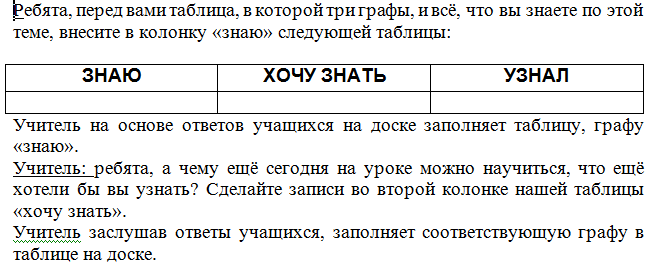 Актуализация знаний Стратегия «ЗХУ» Учитель предлагает составить таблицу и заполнить первые 2 столбца