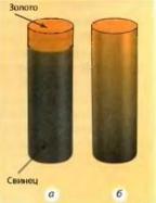 Дополнительный материал: Зависимость скорости диффузии от температуры особенно заметна для твердых тел. Так, английский металлург Вильям Роберт Остин провел следующий опыт. Он наплавил тонкий диск золота на свинцовый цилиндр и на несколько дней поместил этот цилиндр в печь, где поддерживалась температура около 400 °С. Оказалось, что золото продиффундировало через весь цилиндр ; тем временем при комнатной температуре диффузия практически не наблюдалась.