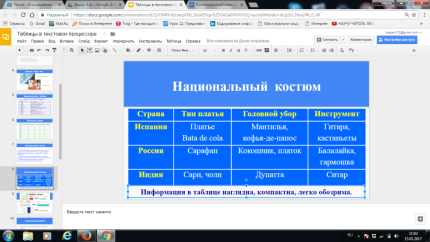 Далее ученики индивидуально за компьютером в MS Word формируют таблицу. Учитель наблюдает, по возможности консультирует учеников. Учитель задает проблемный вопрос и по необходимости объясняет