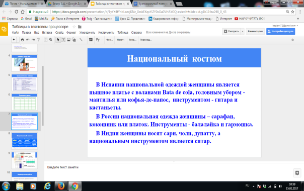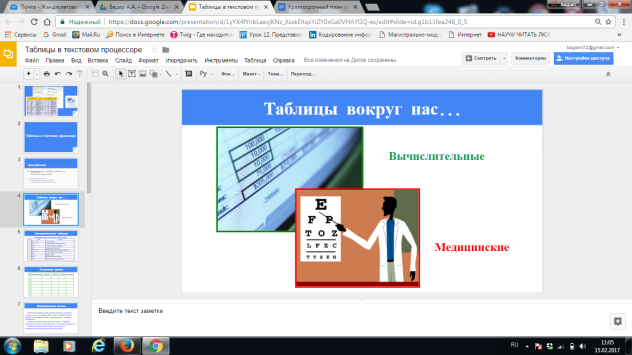 Далее ученики индивидуально за компьютером в MS Word формируют таблицу. Учитель наблюдает, по возможности консультирует учеников.