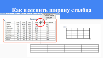 • Как изменить ширину столбца