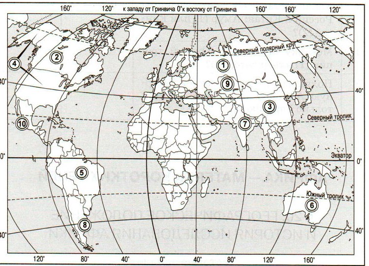 Задание 6. Работа с атласом! (используя «Политическую карту мира») Определи, под цифрами названия 10 государств, их столицы и запиши в тетрадь.