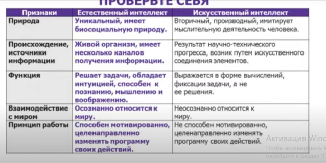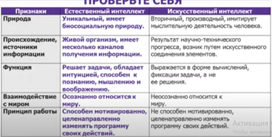 1) Самостоятельно заполняют таблицу «Естественный интеллект».