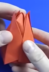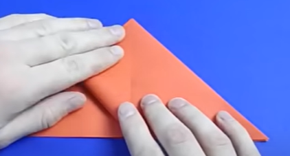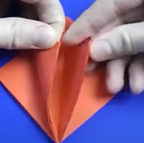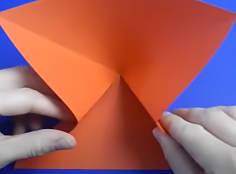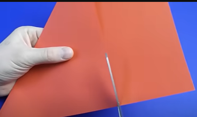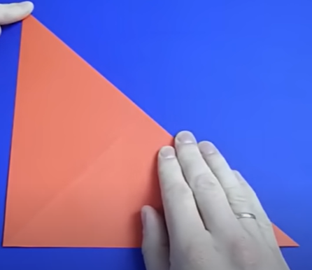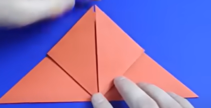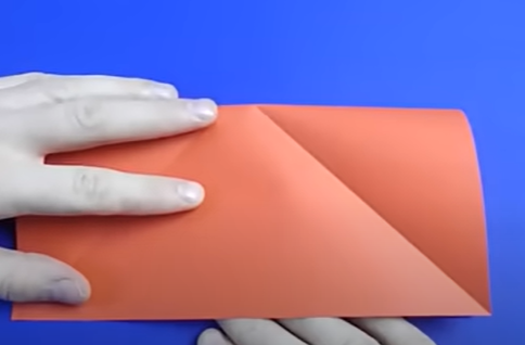 -Первое наше действие Цветной лист(красный,желтый,оранжевый,розовый) форматом А4 в вертикальном формате,складываем треугольником