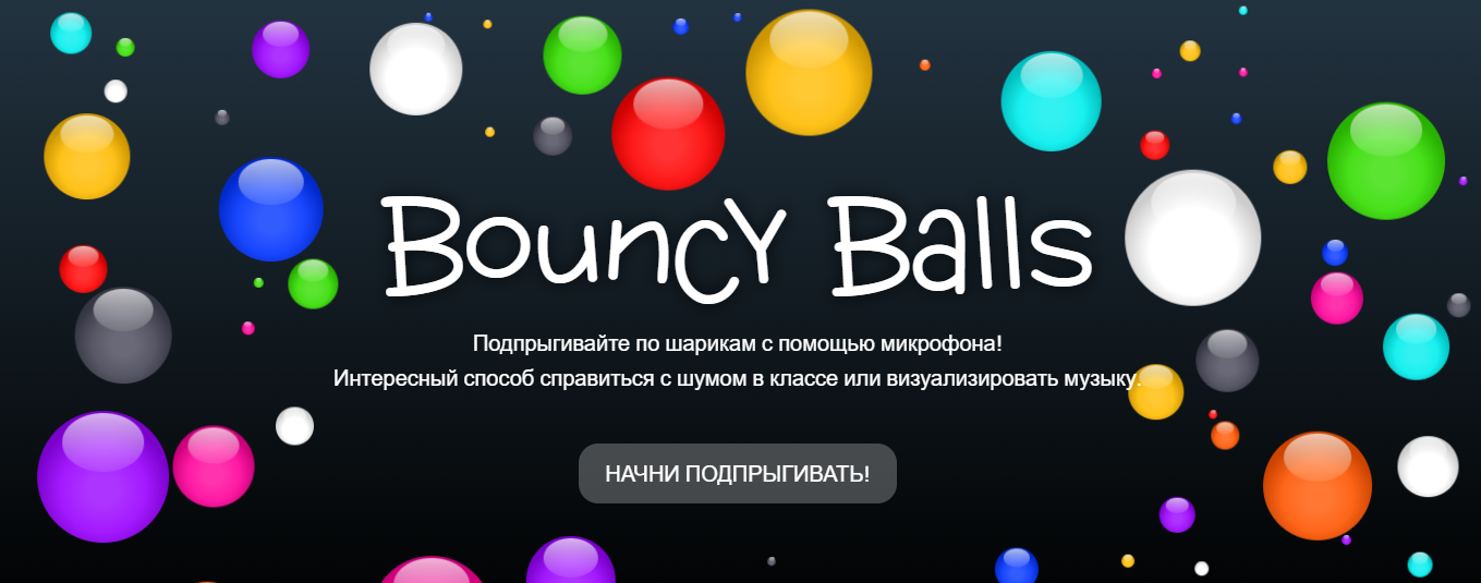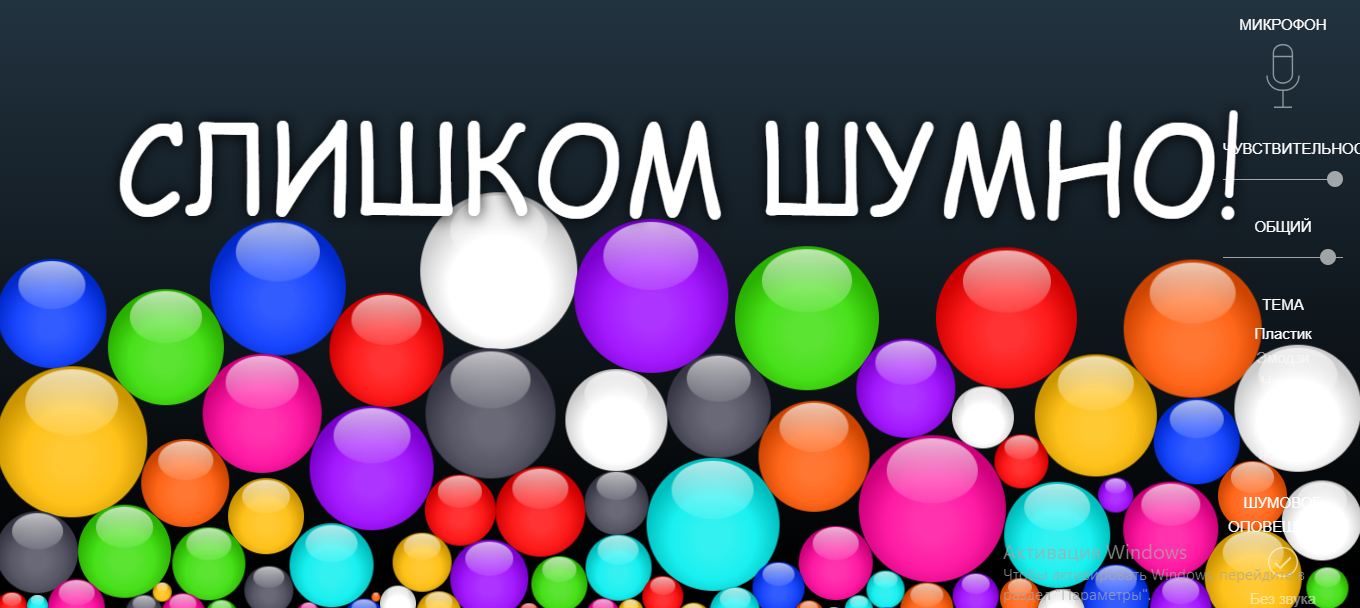 -Смотрите как только я включаю приложение и вывожу его на интерактивную доску,оно начинает активно вас слушать,если в классе шумно то шарики будут подпрыгивать и приложение будет проговаривать (тсс) что означает тише