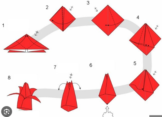 Узнает правила приветствия с соседом по парте,на уроке труда Выполняет выбранное приветствий Внимательно слушает учителя Знакомиться с гостями,которые будут присутствовать на сегодняшнем уроке Узнает о правилах дисциплины во время урока Ознакамливается с правилами приложения Зрительно рассматривает гостей урока Отвечает на заданные вопросы Узнает информацию о сегодняшних гостях Знакомиться с понятием”Оригами” Ознакамливается с видами оригами Отвечает на данные вопросы Знакомиться с темой урока Повторяет правила поведения и безопасности во время урока труд Рассматривает поделку которую будет выполнять на протяжении урока Узнает о необходимом материале для выполнения работы Во Время выполнения работы,учащихся будет сопровождать спокойная мелодия,для концентрации внимания Выполняет первый шаг Отрезает лишнюю часть Разворачивает лист Выполняет параллельное складывание То же самое проделывает с обратной стороны Определяет середину Складываем Углы к середине Загибает углы к середине,со всех сторон Внимательно слушает учителя Выполняет физминутку Проделывает ту же работу с другой стороны листа Загибает углы Объединяет углы То же самое проделывает с другой стороны Дует в отверствие,для раскрытия бутона Выполнения стебля Скручивает зеленый прямоугольник Заклеивает край листа Раскрывает уголки тюльпана Готовая работа Рассматривает готовую работу За выполнение работы получает медаль |