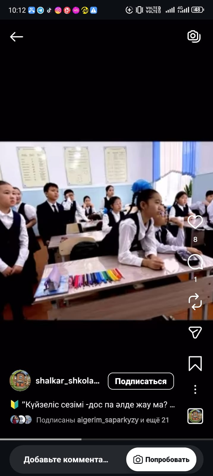 «КҮЙЗЕЛІС СЕЗІМІ - ДОС ПА ӘЛДЕ ЖАУ МА?» жобасы аясында