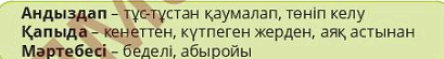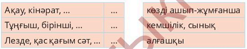 2 деңгей Кестенің 1-бөліміндегі сөздердің мазмұны 2-бөліміндегі қай сөзге сәйкес келеді?