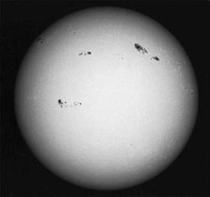 Сурет. 2. 2000 ж. Қыркүйек. Белсенді Сурет -3. 2002 жыллғы дақтар. аймақ AR 9169фотосы. Дақтың диаметрі орташа мәннен 2 еседей үлкен болды