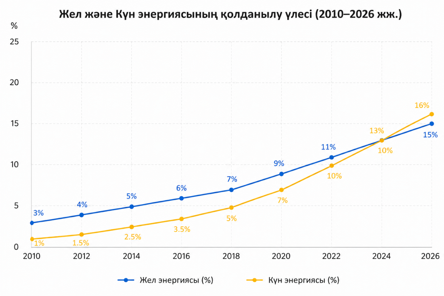Сондықтан ең тиімді шешім – күн және жел энергиясын бірге пайдалану. Мұндай тәсіл энергия өндірудің тұрақтылығын арттырып, табиғи факторларға тәуелділікті азайтады.