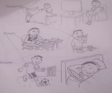 Дескриптор: - күн тәртібінің ретін анықтайды; - күн тәртібін сақтаудың маңыздылығын түсіндіреді; - өз күн тәртібін әңгімелейді.
