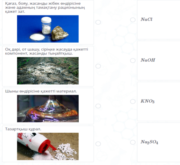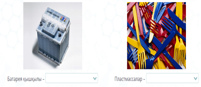 1 тапсырма: Әрбір ұғымды берілген сипаттамалармен сәйкестендір. 2 тапсырма: Ребусты шеш. Жердегі барлық тіршілік негізін қалаушы химиялық элементтің атауын тап (суреттердің орысша атауын қолдан).
