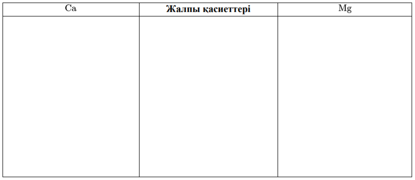 1-тапсырма Кальций және магнийдің физикалық қасиеттерін салыстырып, кестені толтыр.