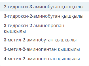 1 тапсырма: Жалпы атаумен берілген аминқышқылдардың дұрыс атауларын көрсет.