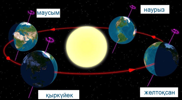 Оқушылар Жыл мезгілдерінің ендіктерге байланысты ауысуы және күн мен түннің ұзақтығын түсіндіреді