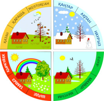 Дескриптор: Жыл мезгілдерінің ендіктерге байланысты ауысуы және күн мен түннің ұзақтығын түсінеді; Күнтізбе негіздері тәулік, ай, жылды біледі; 1 балл