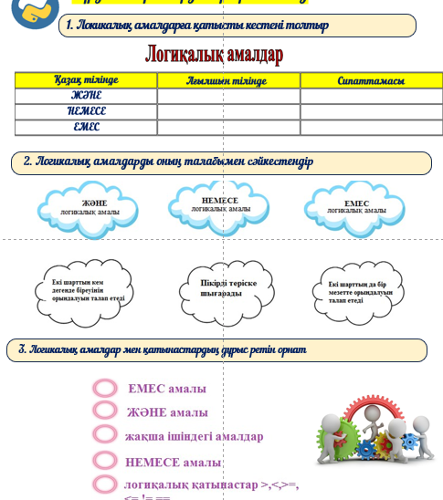 - логикалық амалдарды оның талабымен сәйкестендіреді