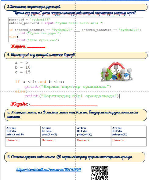 7.3.3.3 Python (пайтон) программалау тіліндегі күрделі шарттарды қолдану; |