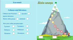 Оқушылар бағалау парағы арқылы өзін-өзі бағалайды. Тапсырманы дұрыс орындағаны үшін 2 балл беріледі |