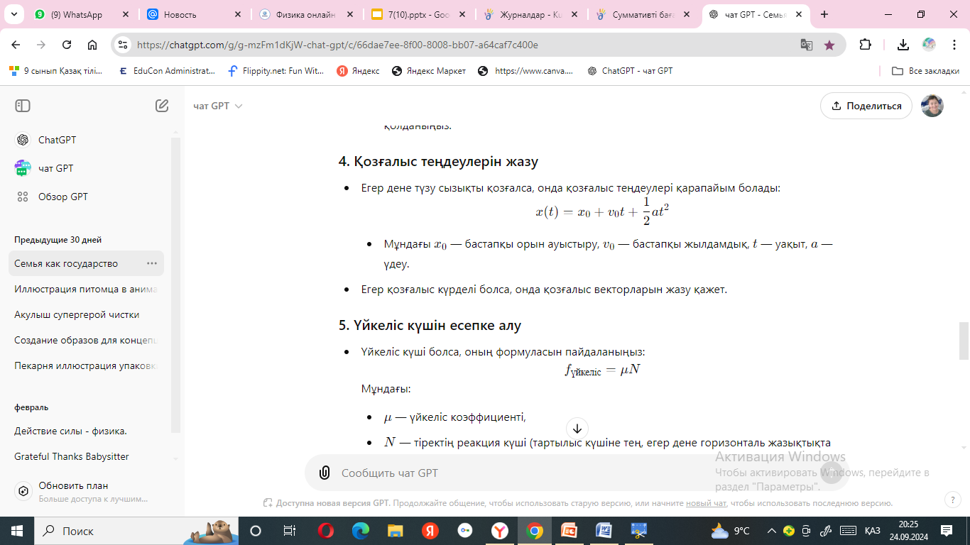 Тапсырманың тақырыбы: Денеге бірнеше күштердің әсері және оның қозғалысын зерттеу.