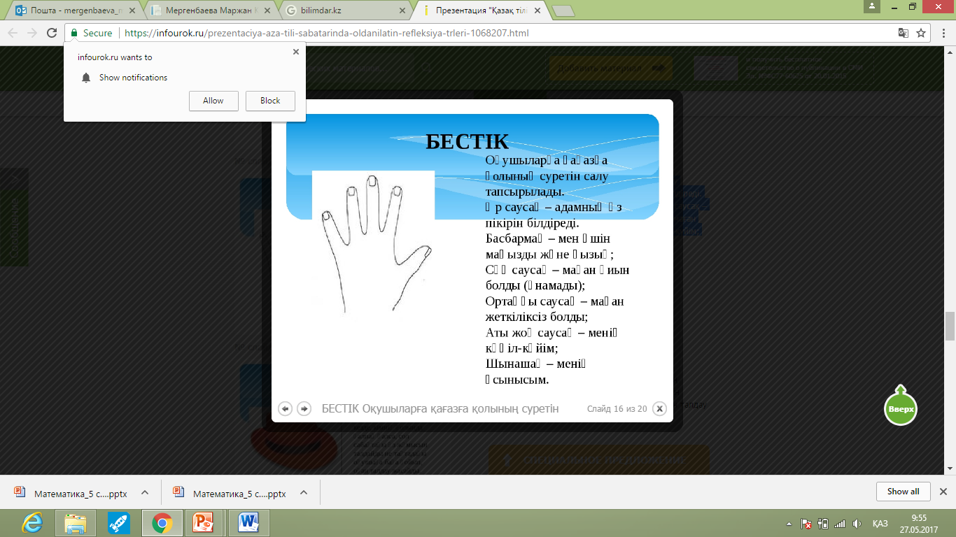 Сабақтың соңы |