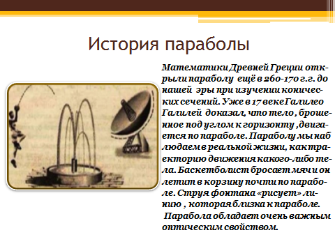 парабола қасиеттерін ескеріп параболаны өмірде қолдану туралы