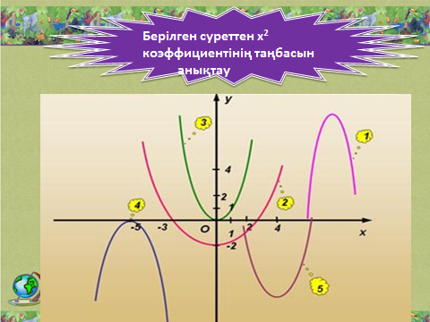 Практикалық жұмыс. https://bilimland.kz/kk/courses/math-kz/analiz-bastamalary/analiz-bastamalary/funkcziya-uhymy-zhane-onyng-berilu-tasilderi/lesson/kvadrattyq-funkcziya-zhane-onyng-grafigi тапсырмаларын орындайды және графиктер салынған кеспе қағаздардағы тапсырмаларды ауызша орындайды.