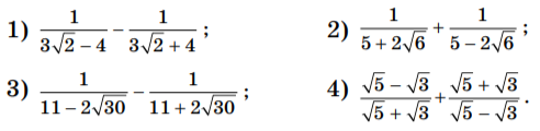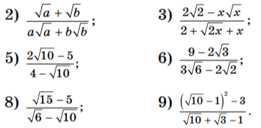8.1.2.4 бөлшек бөлімін иррационалдықтан арылту; |