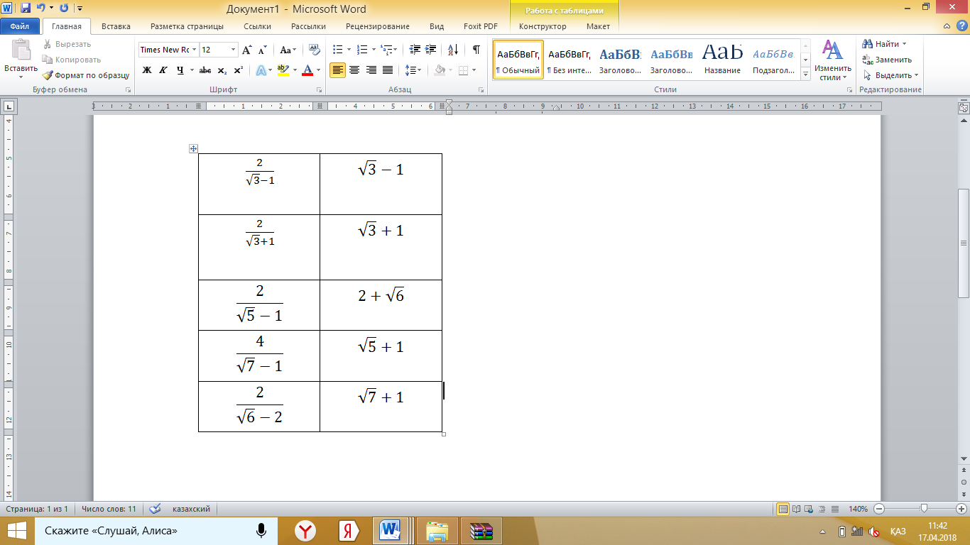 Тапсырма Бөлшек бөлімін иррационалдықтан арылтыңыз: 1) 3) 4) 2) |