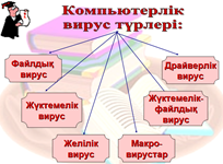 Құжатқа құпия сөз орнату ретін көрсетеді. 1.___________ 2.___________ 3.___________ 4.___________ 5.___________ 6.___________ Құжатқа құпиясөз орнатудың себебін жазады. _______________________________ (Оқушыларға тапсырмаға байланысты суреттер беріледі. Вирустарды тұғырықтың сыртына, ал антивирустарды тұғырықтың ішіне орналастырады. )