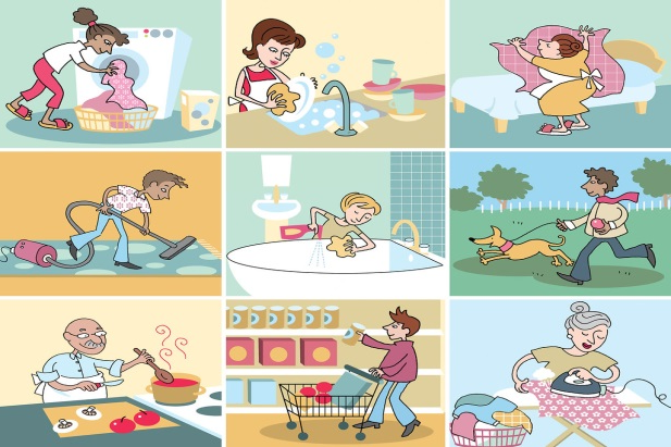 Learners listen to teacher and repeat after the teacher. Learners list the activities under the correct headings.