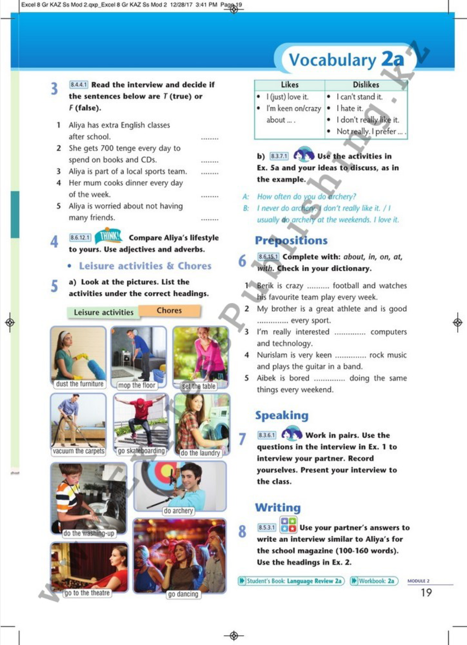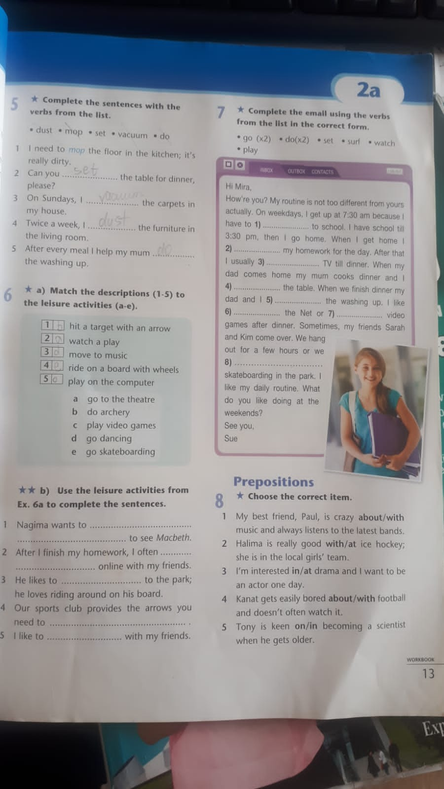 Activity 2 Exercise 6 Page 19 Complete with: in, on, at, with. Check in your dictionary.