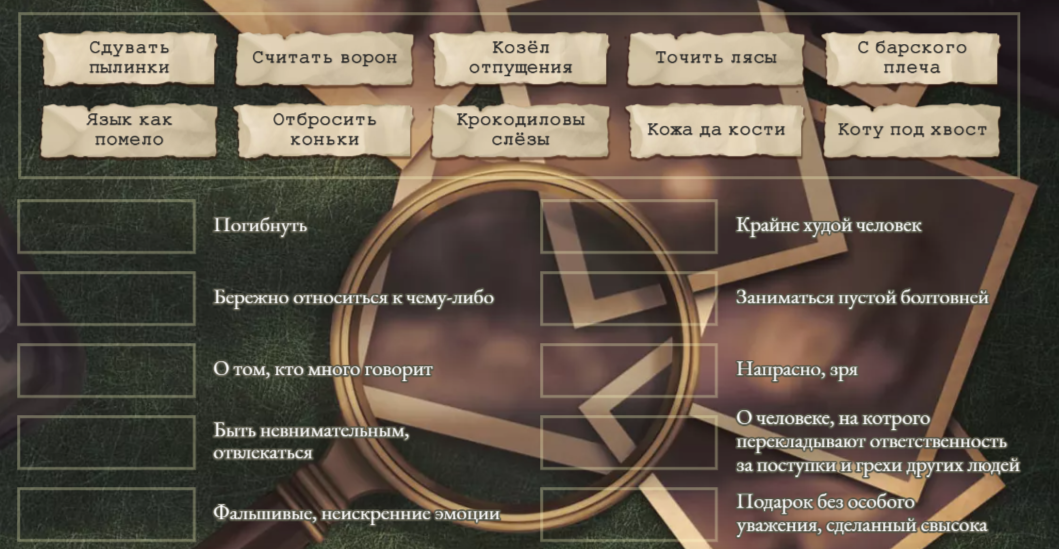 Настольные игры также могут стать отличный инструментом для изучения лексики. Ученикам можно предложить создать свою версию игры «Монополия», где на каждом поле будут размещены фразеологизмы с соответствующими заданиями или вопросами о значении и использовании этих выражений в языке. Это позволит реализовать творческий подход к изучению материала.