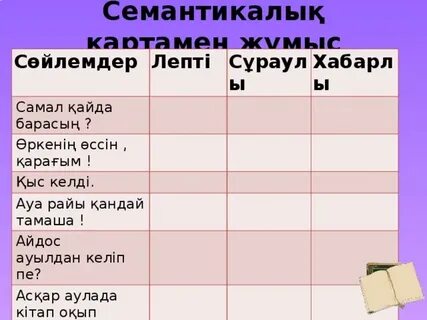 ҚЖ: «Семантикалық карта» әдісі Сөйлем түрлеріне қарай белгіле